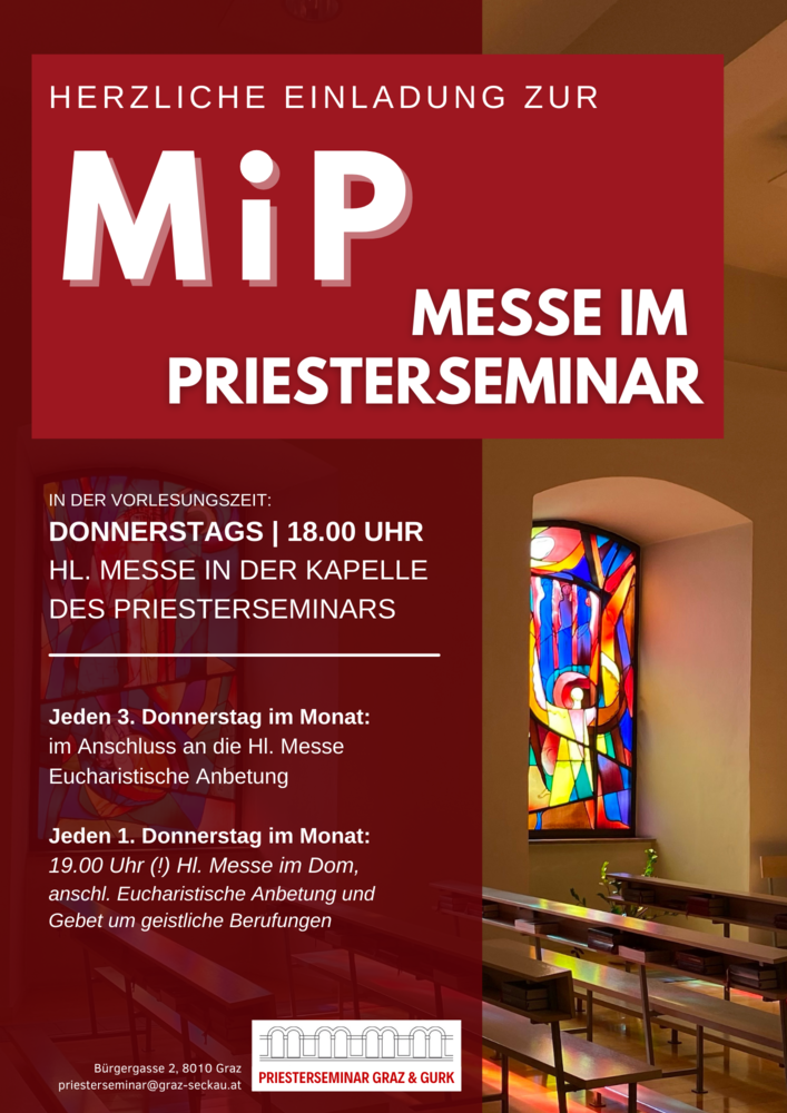 Herzliche Einladung zur gemeinsamen Messe jeden dritten Donnerstag um 18.00 Uhr in der Kapelle des Priesterseminars.