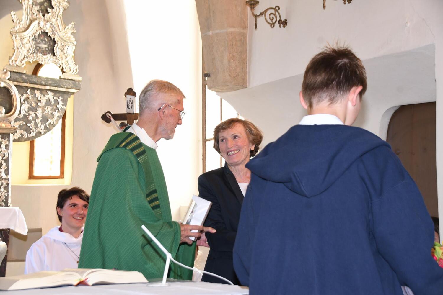 Doch neben der Berufstätigkeit engagierte sie sich im öffentlichen Leben der Marktgemeinde und vor allem in der Pfarre. Viele Jahre war sie Mitglied des Pfarrgemeinderates und in den letzten zwei Perioden sogar Vorsitzende. Gerade in diese Aufgabe investiert sie viel Herzensblut. An der Seite des Pfarrers wurde sie zur „Mutter der Pfarre“. Sie war vielfach erste Ansprechperson für unsere Pfarrgemeinderäte und viele Menschen im Ort.