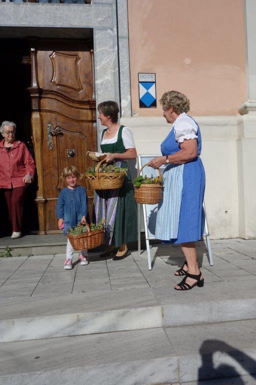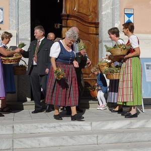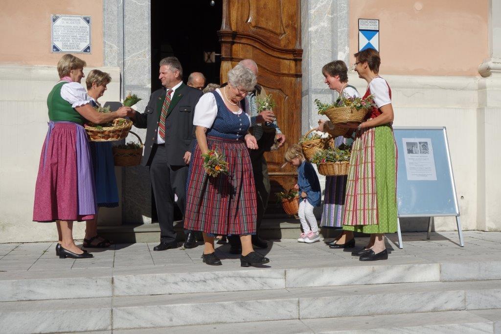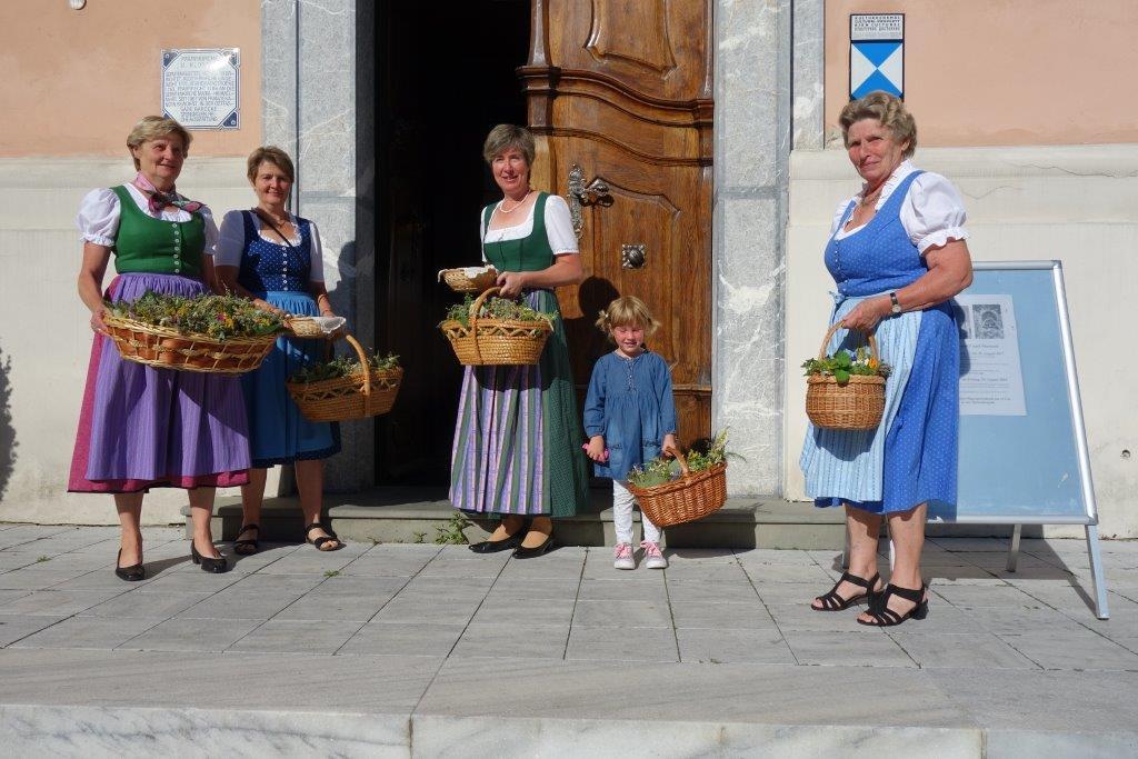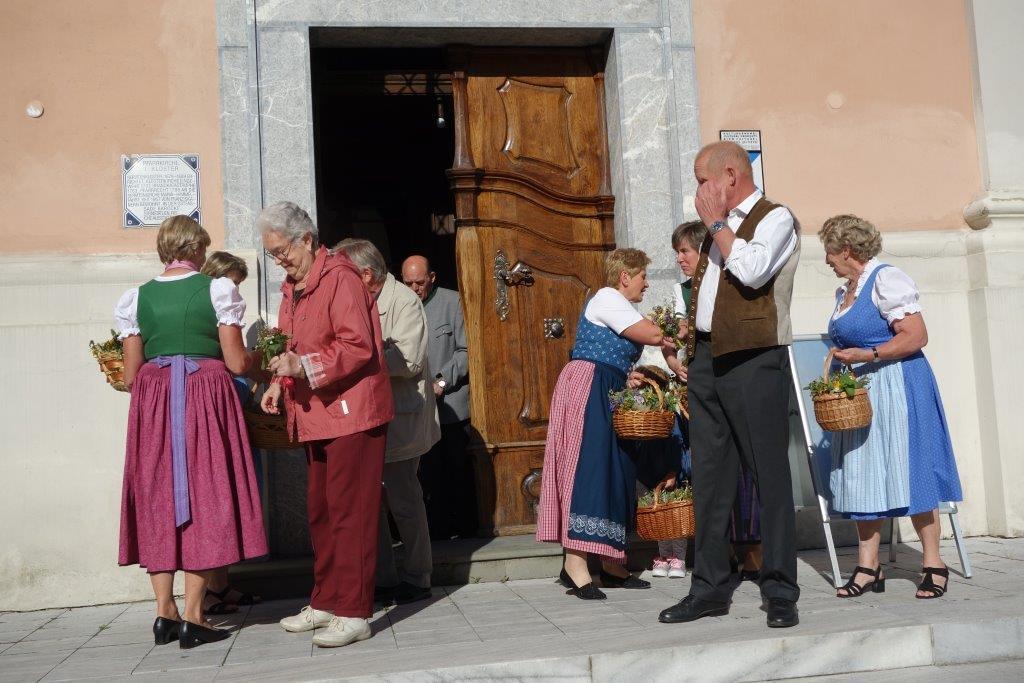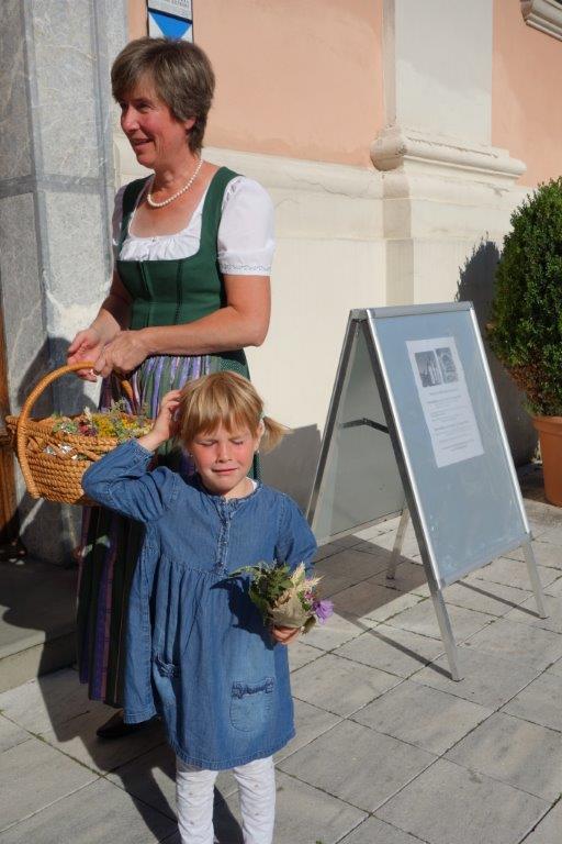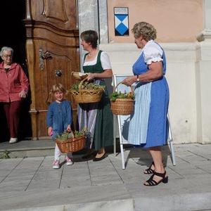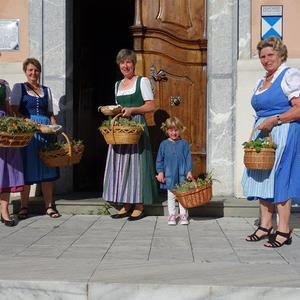 Pater Simon segnete die Kräuterbüscherln nach den heiligen Messen um 8 Uhr und 10 Uhr. Hernach wurden die Sträußchen von den Bäuerinnen an die Gottesdienstbesucher gegen eine kleine Spende verteilt. Der Spendenerlös kommt heuer dem Verein "Leib & Söl" für den Einbau eines Liftes zugute. Ein herzliches Vergelt`s Gott gebührt den edlen Spendern!