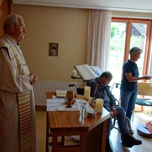 Anlässlich seines 76. Geburtstages zelebrierte Pater Simon am Freitag, dem 26. Mai 2017, um 15.30 Uhr, eine heilige Messe im Volkshilfe Seniorenzentrum Adriach. 17 Insassen des Heimes waren teils mit Rollstuhl, teils mit Rollator, zur Eucharistie in die Hauskapelle gekommen. Sie lauschten dem Evangelium nach Johannes und konnten alle die heilige Kommunion empfangen.