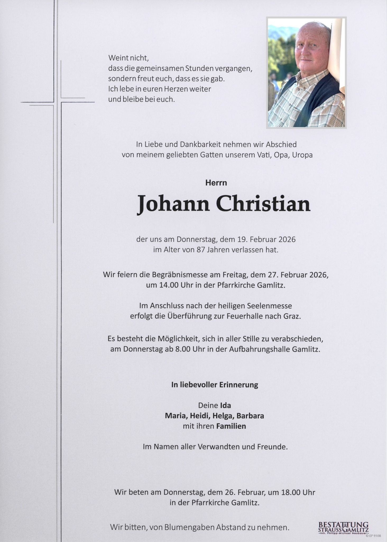 TODESANZEIGEN / PFARRE GAMLITZ
