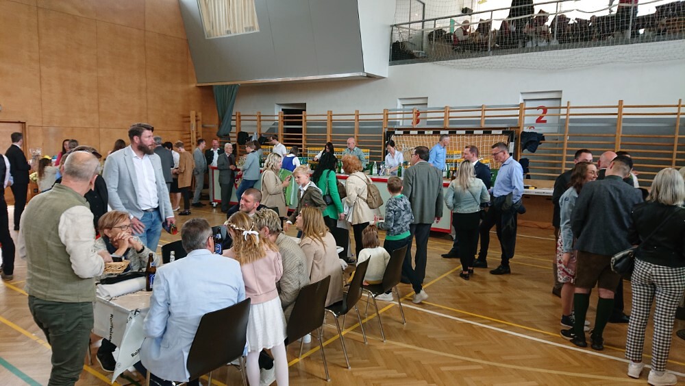 Nach der wunderschön gestalteten Erstkommunion zogen die Erstkommunionkinder in die Halle um beim Start des Pfarrfests dabei zu sein. Nachdem wir letztes Jahr richtiges Wetterglück hatten, mussten wir diesmal in die Veranstaltungshalle ausweichen. Dem Wetter zum Trotz war die Stimmung sehr gut. Das Kinderprogramm war gut besucht, viele Preise wurden verlost und natürlich gab es wieder genug zu essen und zu trinken. Obwohl diesmal besonders viele Torten gebacken wurden, waren am Schluss alle weg.