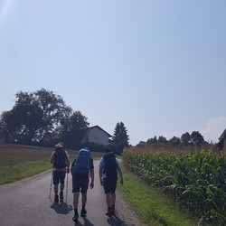 Am zweiten Tag führte uns der Weg - alle gut beschirmt (siehe Foto) - bei nassfeuchtem Wetter weiter nach Gamlitz. An der Ratscher Weinstraße überquerten wir die Staatsgrenze nach Sveti Kungota. Die Nächtigung erfolgte in Marburg.
