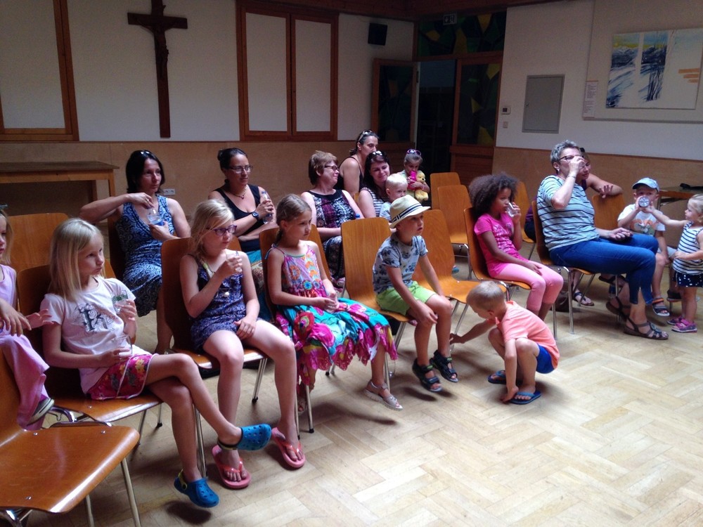 Vorlesen - Bilderbuchkino - Kamishibai und am Schluss noch eine Blindverkostung - trotz der hochsommerlichen Temperaturen hatten die Kinder großen Spass bei unserer kleinen, aber feinen Veranstaltung.