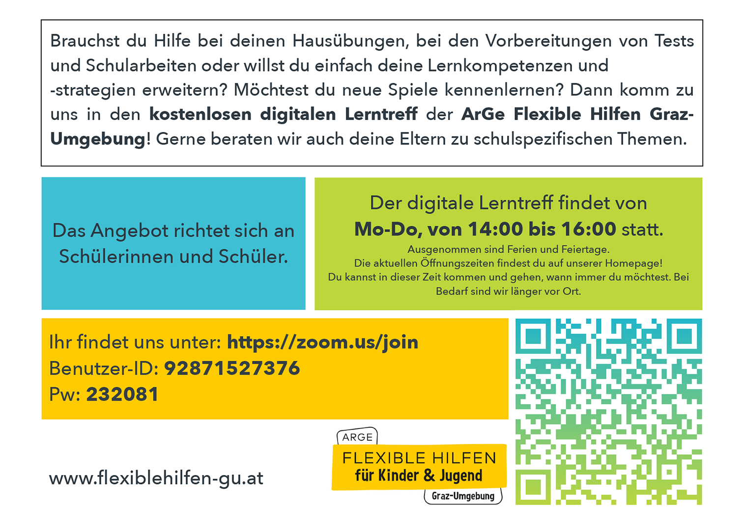 Weitere Informationen unter https://flexiblehilfen-gu.at/angebote/angebot/lerntreff-digital-36.