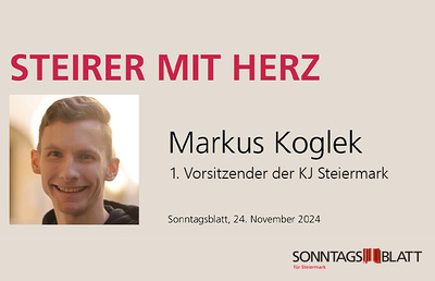 Im SONNTAGSBLATT ist diesmal Markus Koglek der Steirer mit Herz. Er setzt sich besonders für Kinder und Jugendliche in der Pfarre Dobl und im Seelsorgeraum Kaiserwald ein.
